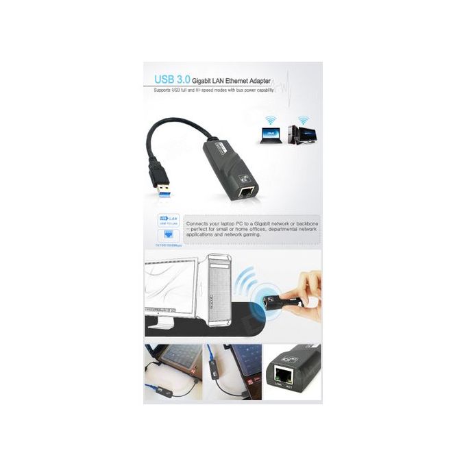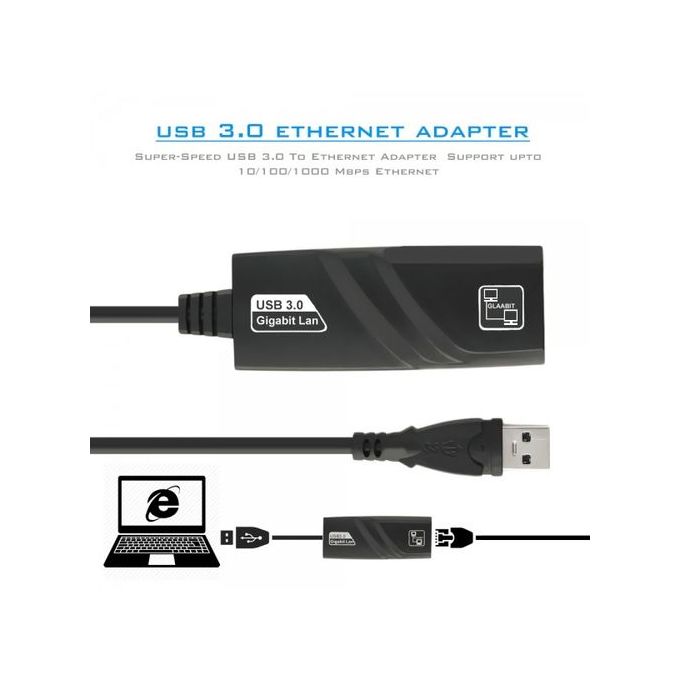 Adaptateur USB 3.0 Vers Ethernet Gigabit 10/100/1000 – Noir