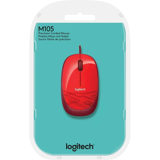 Logitech Souris filaire M105 – 3 Boutons – Suivi Optique 1000 PPP, Ambidextre, Compatible avec PC/Mac/Portable – Rouge
