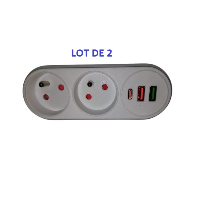 Multiprise 2 Prises 2 ports USB et 1 type-c (lot de 2)