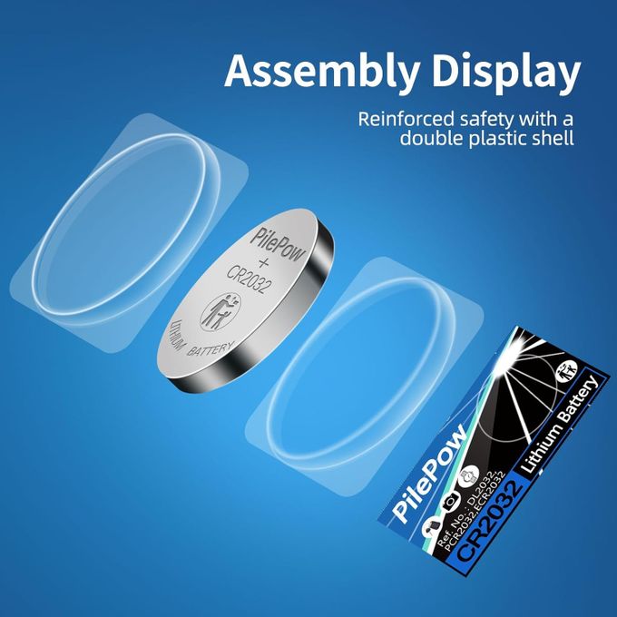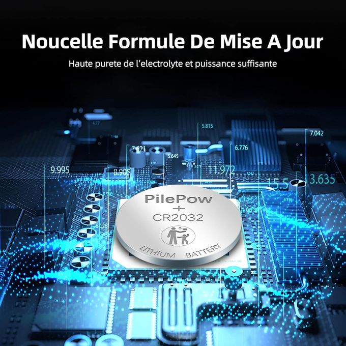 Pile CR2032 Bouton, Lot de 6 Pile Bouton CR2032 3V Ronde Plate, Haute Performance pour telecommande Portail, Porte-clés, balances et dispositifs Portables et médicaux.